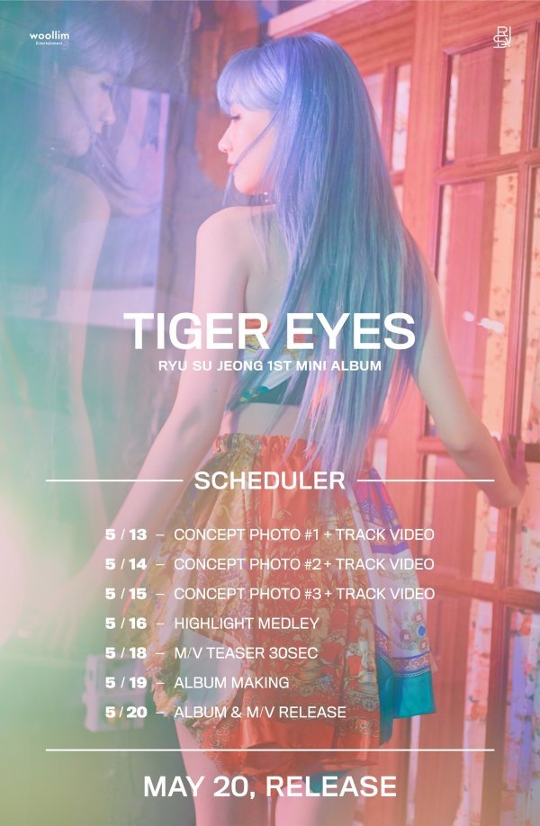 소속사 울림엔터테인먼트는 12일 공식 SNS를 통해 류수정의 첫 번째 솔로 앨범 'Tiger Eyes(타이거 아이즈)'의 컴백 스케줄러를 공개했다.