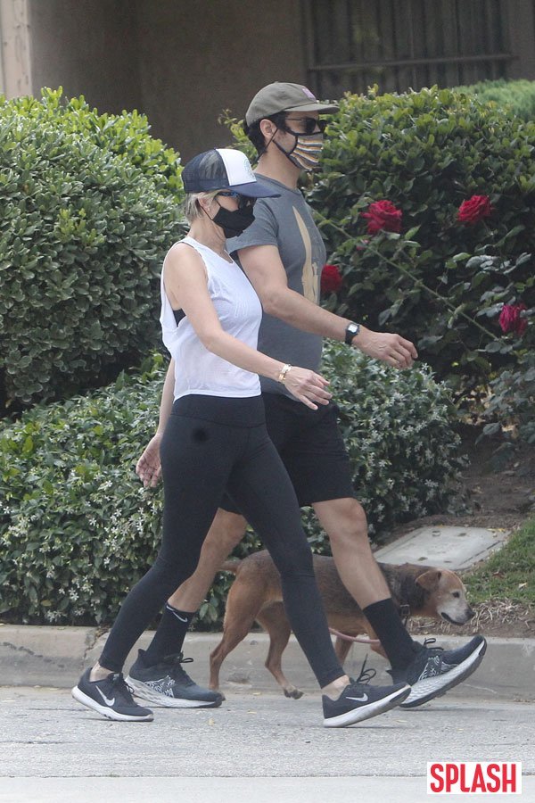 11일(현지시간) 미국 로스앤젤레스(LA)에 한 거리에서 포착된 크리스틴 위그는 코로나19 여파에도 남자친구와 운동복을 입고 함께 산책하는 일상을 전해 사람들의 이목이 집중됐다.