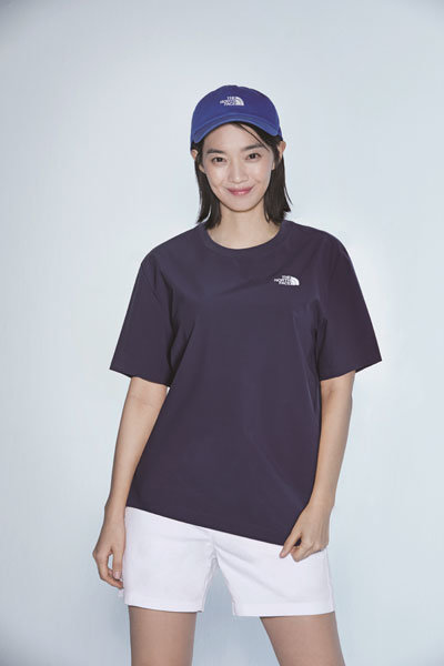 ‘시티 눕시 반팔 라운드티’를 착용한 노스페이스 홍보대사 신민아. 사진제공|노스페이스