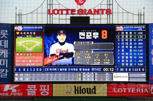 롯데는 올 시즌부터 전광판에서 선수들의 타율을 과감히 삭제한 대신 미국야구계가 가장 주목하는 기록인 OPS를 넣었다. 이는 그간 데이터 활용에 취약했던 롯데의 변화를 단적으로 보여주는 사례다. 부산|김민성 기자 marineboy@donga.com
