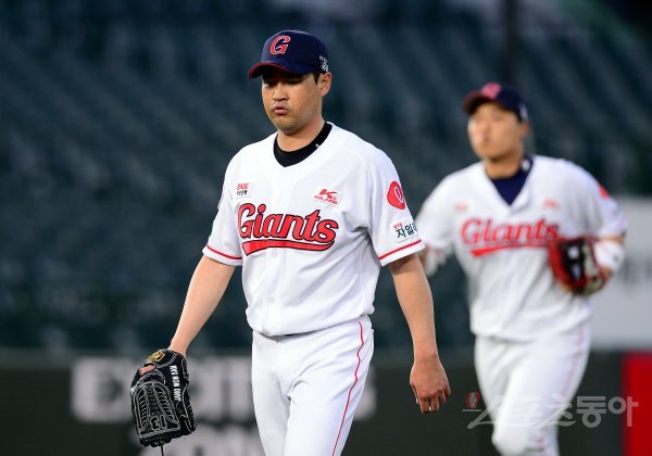 2회까지 5실점을 기록한 롯데 선발 장원삼이 이닝 종료 후 아쉬워하며 더그아웃으로 향하고 있다.