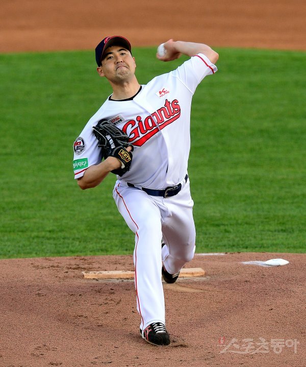롯데 선발투수 장원삼이 힘차게 볼을 던지고 있다.