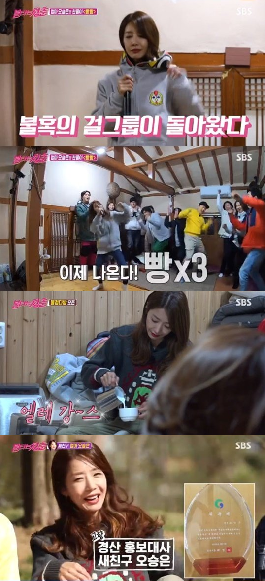 한편 오승은이 출연하는 SBS '불타는 청춘'은 중견 스타들이 서로 자연스럽게 알아가며 진정한 친구가 되어가는 과정을 담은 리얼리티 프로그램으로 매주 화요일 오후 11시에 방송된다.