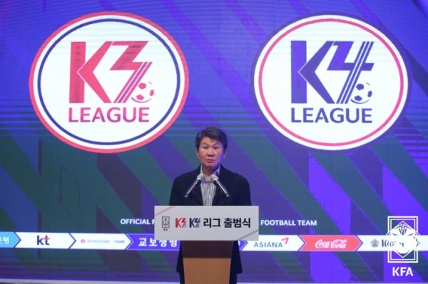 이어 그는 “협회장 취임 이후 노력 끝에 K3·4리그를 출범하게 됐다. 이는 단순히 하나의 리그가 시작되는 것이 아니라 대한민국에서도 진정한 축구 생태계가 만들어진다는 것을 의미한다. 전문 선수부터 동호인까지 모두가 디비전 시스템이라는 큰 틀 속에서 공존하게 될 것”이라고 말했다.