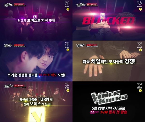 제작진에 따르면 이 부분은 ‘보이스 코리아 2020’에서 새롭게 도입되는 룰에 대한 힌트를 담은 것이라고. 제작진은 “이번 시즌에는 ’블락(block)’이라는 룰이 새롭게 추가됐는데, 이는 자신이 마음에 드는 참가자가 다른 코치와 매칭이 되지 않도록 방어할 수 있는 제도”라며 “코치가 참가자의 목소리를 얼마나 높이 평가하는지, 얼마나 자신의 팀으로 데려오고 싶은지를 알 수 있는 척도이기도 하다. 코치 간 재능 있는 보컬리스트를 차지하기 위한 경쟁과 이들 사이의 긴장감이 심화될 전망”이라고 전했다.