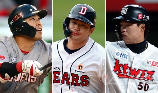 “앞에서 친다!” 타격 메커니즘을 수정한 홈런타자들이 위력을 떨치고 있다. 반발계수가 하향 조정된 공인구에 대한 대처법으로 타격 포인트를 앞에 두고 빠른 타이밍에 배트를 휘두르면서 SK 한동민, 두산 김재환, KT 강백호(왼쪽부터)는 나란히 홈런 레이스를 주도하는 중이다.스포츠동아DB