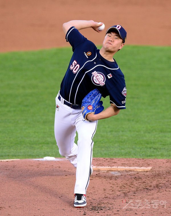 두산 선발투수 이영하가 힘차게 볼을 던지고 있다.