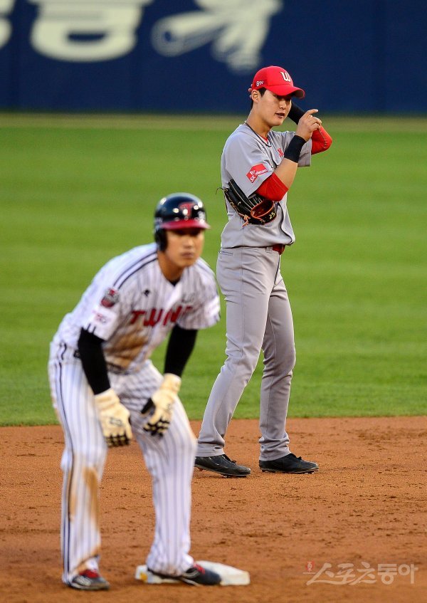 2회말 2사 만루 상황에서 실책을 범한 SK 김창평이 아쉬워하고 있다.