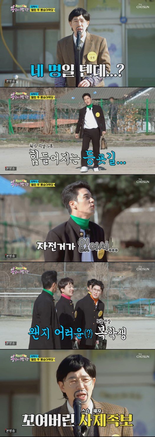 장민호가 ‘뽕숭아학당’ 복학생으로 입학식에 참석했다.