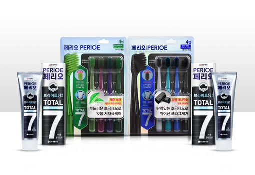 LG생활건강 페리오가 대나무 숯을 함유한 ‘토탈7 블랙차콜 어드밴스 치약’과 ‘토탈7 와이드액션 차콜·그린티’ 칫솔(사진)을 내놓았다.