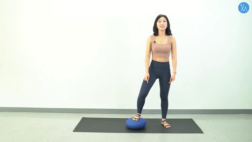 집에서도 누구나 할 수 있는 집콕운동. 오늘은 누구나 쉽게 할 수 있는 중둔근 운동을 배우도록 하겠습니다. 밸런스 쿠션을 이용해 진행되는 이 동작은 엉덩이 근육을 단련시켜 줍니다. 엉덩이 근육을 강화하면 무릎, 골반의 부상 예방이 가능합니다.