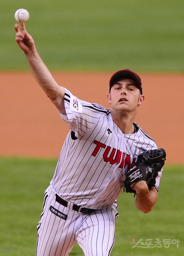 1회초 LG 선발 투수 윌슨이 마운드에 올라 역투하고 있다.