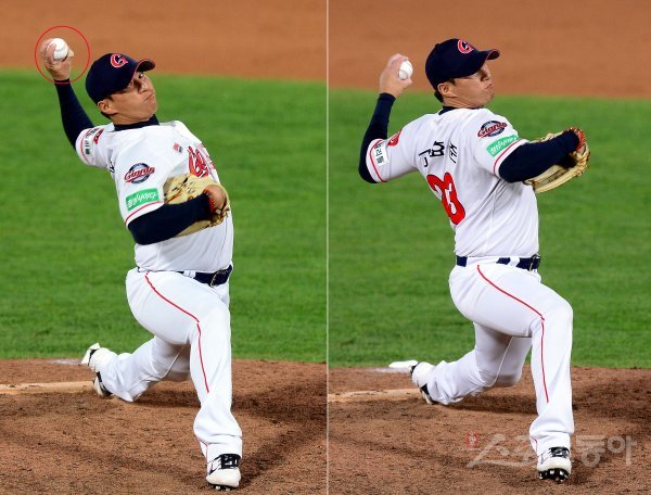 두산의 어필로 심판 확인 결과 고효준은 왼손 엄지에 테이핑을 한채 투구를 펼쳤다.