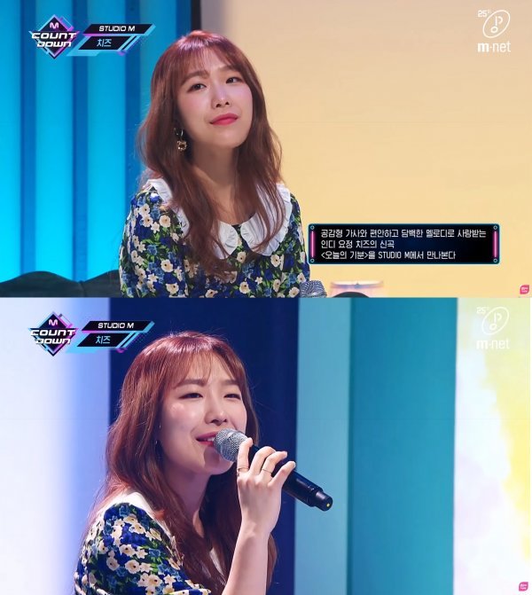 치즈는 14일 엠카운트다운 스튜디오M을 통해 새로운 미니앨범의 타이틀곡 ‘오늘의 기분’을라이브로 선공개 하며 활동의 시작을 알렸다. 음악방송은 2017년 발매했던 ‘Be There’ 이후 약 3년만의 출연이다.