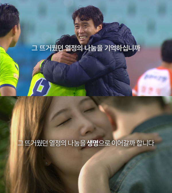 한국프로축구연맹(총재 권오갑, 이하 ‘연맹’)과 질병관리본부, 한국장기조직기증원 그리고 고알레와 함께하는 올 시즌 K리그 생명나눔캠페인 공익광고 1편이 15일 공개됐다.