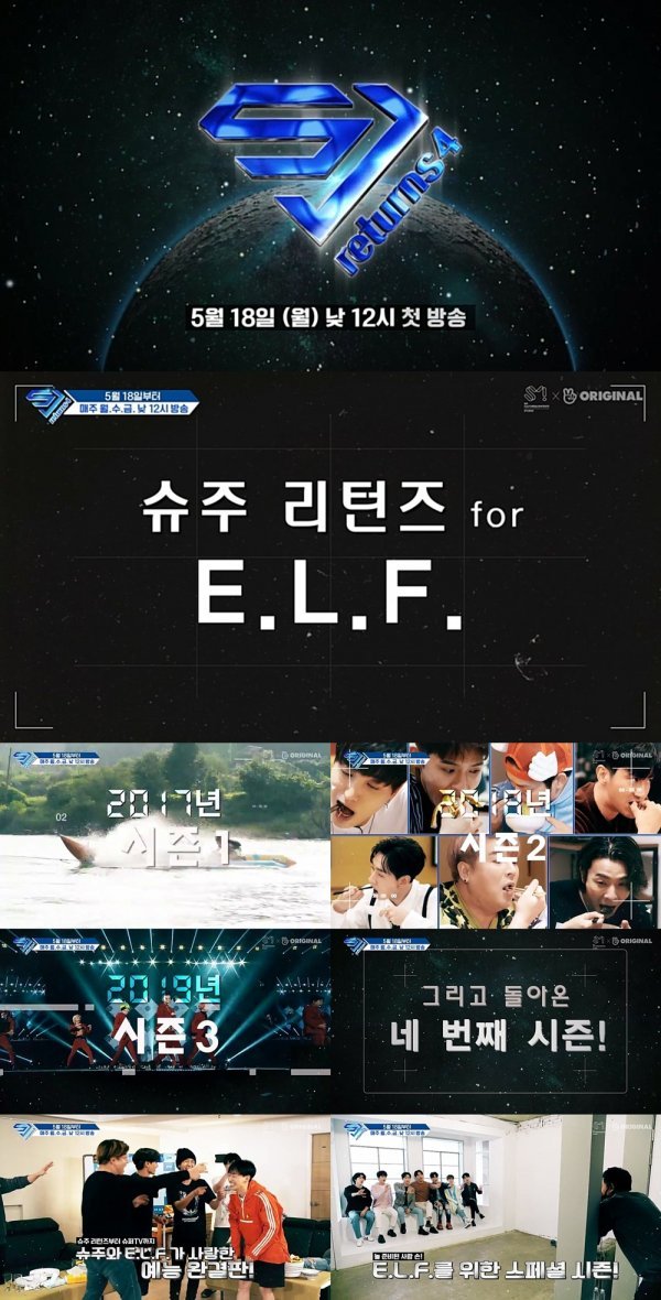 ‘아이돌 예능의 최강자’ 슈퍼 주니어의 예능 완전판이 될 ‘슈주 리턴즈4’는 오는 18일부터 매주 월, 수, 금 낮 12시에 V LIVE(V앱), 네이버TV ‘슈주 리턴즈’ 채널을 통해서 방송된다.