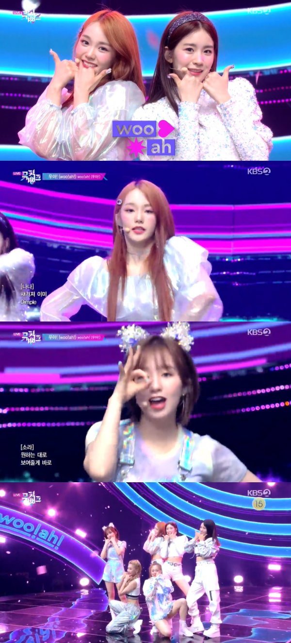 woo!ah!(우아!)는 15일 방송된 KBS2 ‘뮤직뱅크’에서 데뷔곡 ‘우아!(woo!ah!)’의 무대를 선보였다. 우아는 시청자들의 눈과 귀를 만족시키는 무대로, 데뷔 무대부터 눈도장을 확실히 찍었다.
