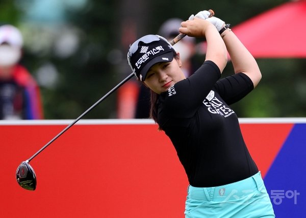 17일 경기도 양주 레이크우드 컨트리클럽에서 제42회 KLPGA 챔피언십 4라운드가 열렸다. 박현경이 1번홀에서 드라이버 샷에 앞서 스윙 연습을 하고 있따.