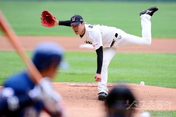 17일 인천 SK행복드림구장에서 ‘2020 신한은행 SOL KBO리그’ SK 와이번스와 NC 다이노스의 경기가 열렸다. SK 선발투수 백승건이 힘차게 볼을 던지고 있다.