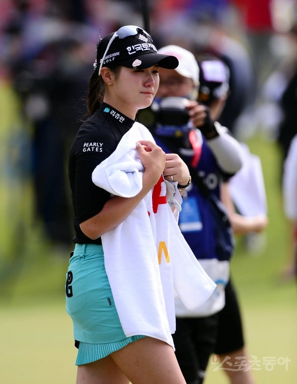 17일 경기도 양주 레이크우드 컨트리클럽에서 제42회 KLPGA 챔피언십 4라운드가 열렸다. 박현경이 17언더파 271타로 생애 첫 우승을 달성한 뒤 기쁨의 눈물을 흘리고 있다.