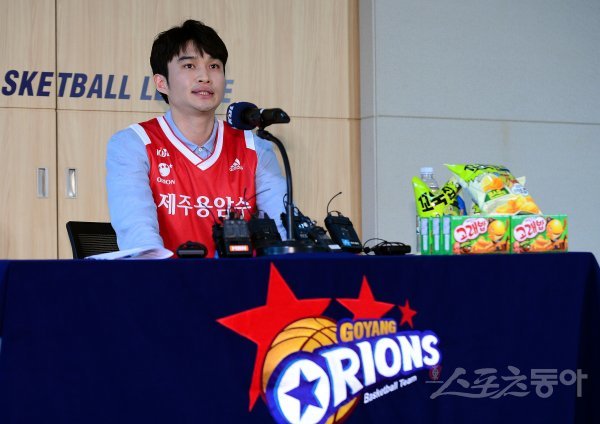 18일 서울 논현동 KBL센터에서 고양 오리온과 FA 계약을 체결한 이대성이 입단 기자회견을 가졌다. 이대성이 FA 계약 과정과 입단 포부를 밝히고 있다.