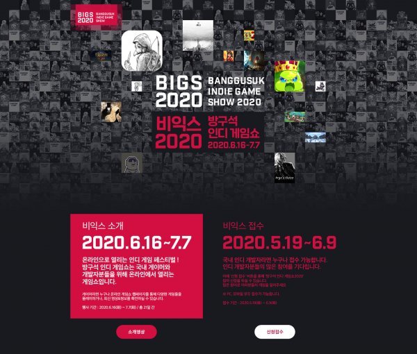 네오위즈는 6월 16일부터 7월 7일까지 ‘방구석 인디 게임쇼(BIGS) 2020’를 개최한다. 신종 코로나바이러스 감염증(코로나19) 여파로 국내외 게임쇼가 연이어 취소되면서 홍보에 어려움을 겪는 인디 게임사들을 지원하기 마련한 온라인 페스티벌이다. 네오위즈와 경기도콘텐츠진흥원이 공동 주관한다. 참가를 희망하는 인디 개발사는 공식 페이지에서 접수하면 된다. 대상은 인디 게임을 개발하는 만 14세 이상 개인 개발자 또는 개발사이며 PC, 모바일 등 플랫폼에 상관없이 접수 가능하다. 기간은 5월 19일부터 6월 9일까지며 비용은 무료다.