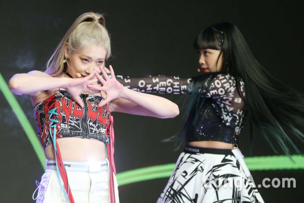 그룹 시크릿넘버의 진희(왼쪽)가 19일 오후 서울 강남구 일지아트홀에서 열린 첫 번째 싱글 앨범 \'Who Dis?\' 발매 쇼케이스에서 새로운 무대를 선보이고 있다.