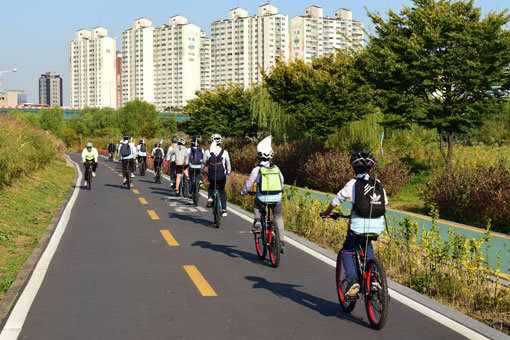 2019년 사행산업 건전화 평가에 우수성과로 선정된 마음 따라가는 자전거 길 프로그램에 참가한 청소년들이 자전거 라이딩을 하고 있다.
