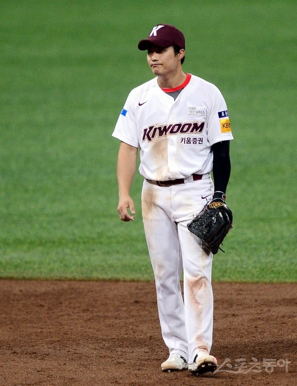 19일 서울 고척스카이돔에서 ‘2020 신한은행 SOL KBO리그’ 키움 히어로즈와 SK 와이번스의 경기가 열렸다. 2회초 1사 1, 2루 SK 정현의 내야 땅볼 때 키움 김하성이 실책한 뒤 아쉬워하고 있다.