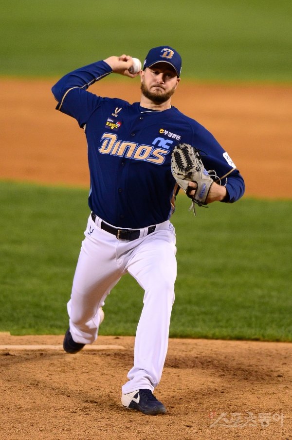 19일 서울 잠실야구장에서 ‘2020 신한은행 SOL KBO 리그’ NC 다이노스와 두산 베어스의 경기가 열렸다. 선발 투수로 등판한 NC 라이트가 역투하고 있다.