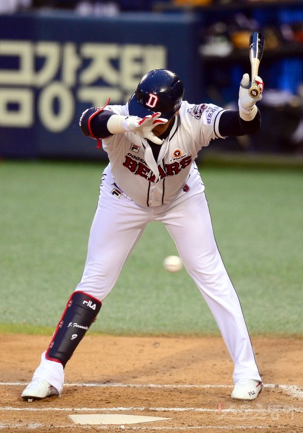 19일 서울 잠실야구장에서 ‘2020 신한은행 SOL KBO 리그’ NC 다이노스와 두산 베어스의 경기가 열렸다. 1회말 두산 페르난데스가 몸쪽 볼을 피하고 있다.
