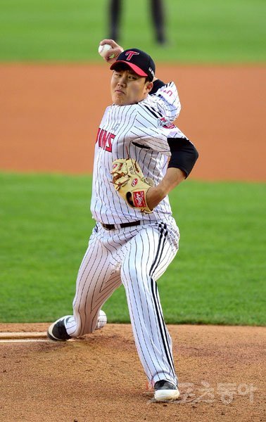 이날 임찬규는 최고구속 145㎞의 포심패스트볼(포심·40개)과 체인지업(37개), 커브(18개), 슬라이더(4개)를 섞어 던졌다. 포심과 체인지업을 적절히 결정구로 활용하며 상대 타자의 타이밍을 뺏은 투구가 돋보였다.