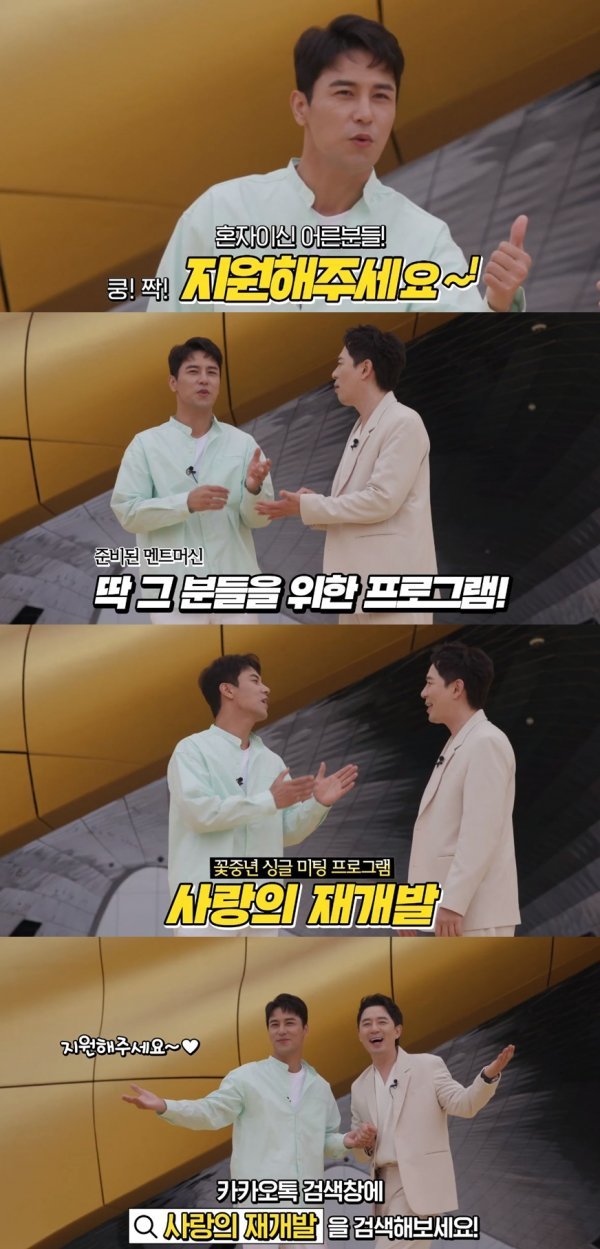 \'사랑의 재개발\'은 \'50+ 세대의 3:3 어른 미팅\'을 콘셉트로, 외로운 중장년 싱글들의 잠들었던 연애 세포를 깨우고, 새로운 사랑을 찾아주는 3:3 어른 미팅 프로그램이다.