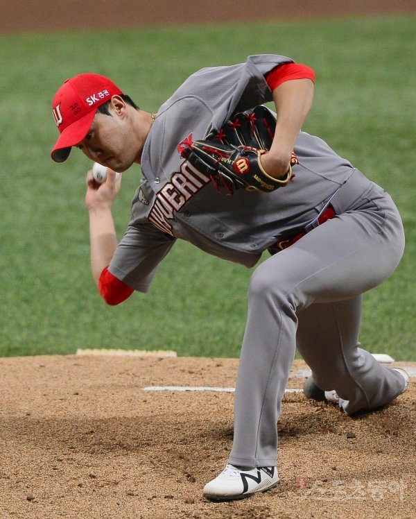 1회말 SK 박종훈이 마운드에 올라 역투하고 있다.