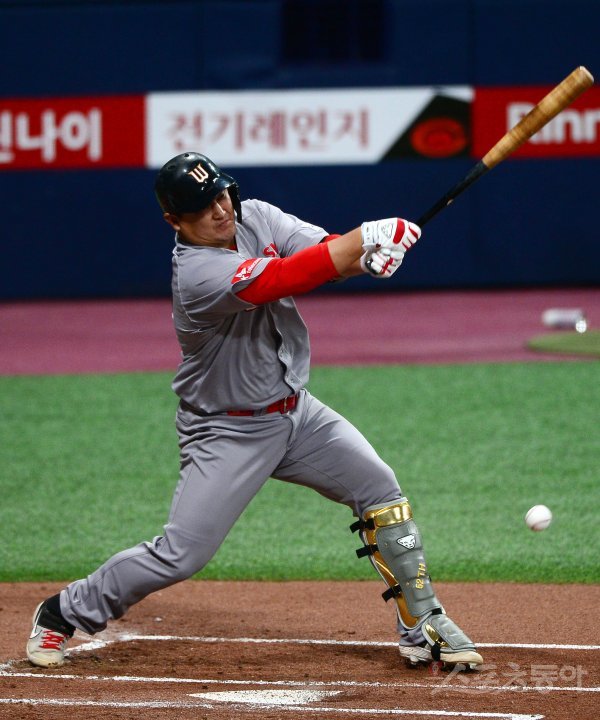 2회초 1사 SK 남태혁이 시즌 첫 안타를 날리고 있다.
