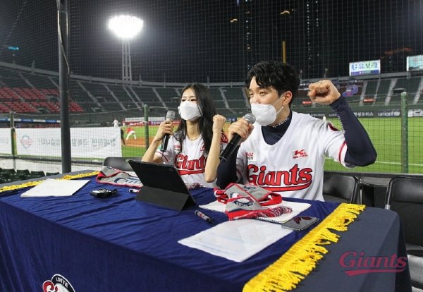 수비 시에는 ‘자이언츠 TV’의 임주경 리포터와 조지훈 응원단장의 진행으로 SNS 오픈 채팅방을 이용한 팬과의 소통 방송이 진행된다. 방송을 통해 경기 중 ‘파울볼 증정’, ‘응원가 맞추기’ 등 다양한 이벤트에 참여할 수 있다.