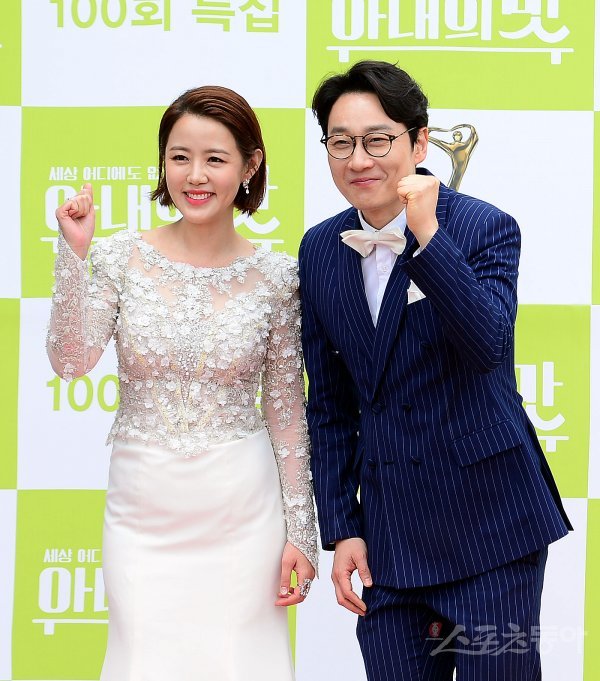 21일 인천 영종도 인천 파라다이스시티 스튜디오 파라다이스에서 열린 TV조선 ‘아내의 맛’ 100회 특집 포토행사에 참석한 MC 이하정, 이휘재가 카메라를 향해 포즈를 취하고 있다.
