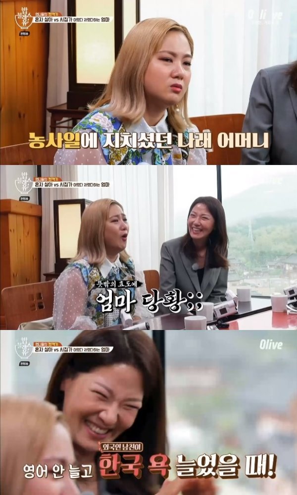 이날 박나래는 농촌에 시집가 시집살이로 고생한 어머니의 사연을 언급했다. 그는 “어머니가 시골에서 돼지 300마리를 키우기도 했다. 그래서 나한테는 외국인을 만나라더라. 시부모는 멀리 있고, 남자는 한국문화를 아예 모르는 사람을 만나라했다”고 말했다.