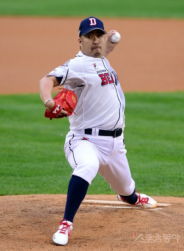 1회초 두산 유희관이 마운드에 올라 역투하고 있다.