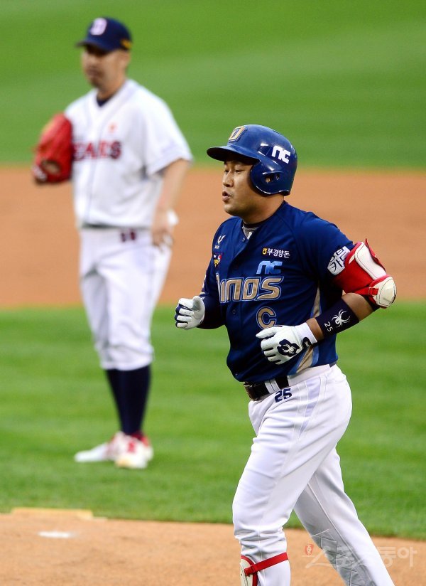 1회초 무사 1, 2루 NC 양의지가 병살타를 친 뒤 아쉬워하고 있다.