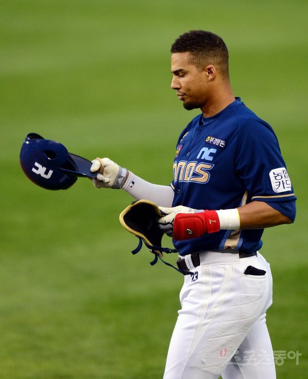 2회초 2사 NC 알테어가 내야 땅볼로 아웃된 뒤 아쉬워하고 있다.