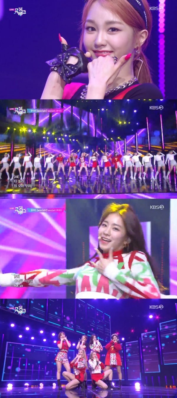 woo!ah!(우아!)는 22일 방송된 KBS2 '뮤직뱅크'에서 데뷔곡 '우아!(woo!ah!)'로 오프닝 무대를 꾸몄다. woo!ah!(우아!) 멤버들은 레드 콘셉트의 의상으로 스포티한 매력을 보여줬고, 신인다운 통통 튀는 모습이 담긴 퍼포먼스로 3분 여의 시간을 순삭했다.