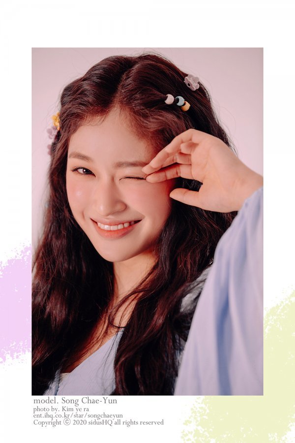 또 송채윤은 과감한 볼 터치로 과즙미 넘치는 메이크업과 꽃 모양의 머리 장식으로 상큼한 분위기를 극대화하는가 하면, 프릴 원피스를 잡은 채 소녀 같은 포즈를 취하며 발랄하고 경쾌한 에너지를 발산하고 있다.