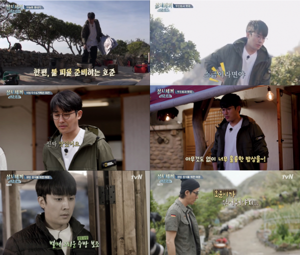 22일 방송된 tvN 예능프로그램 ‘삼시세끼 어촌편5’ 4회에서 손호준이 드라마 촬영으로 하루 늦게 합류하게 되면서 차승원, 유해진 둘만의 죽굴도 라이프가 그려졌다.