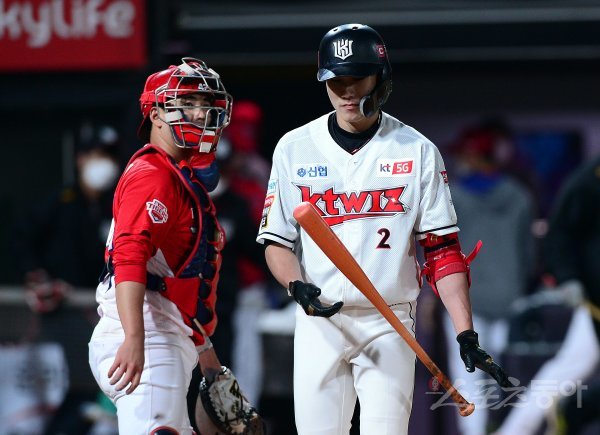 5회말 2사 3루에서 kt 심우준이 삼진 아웃으로 물러나고 있다.