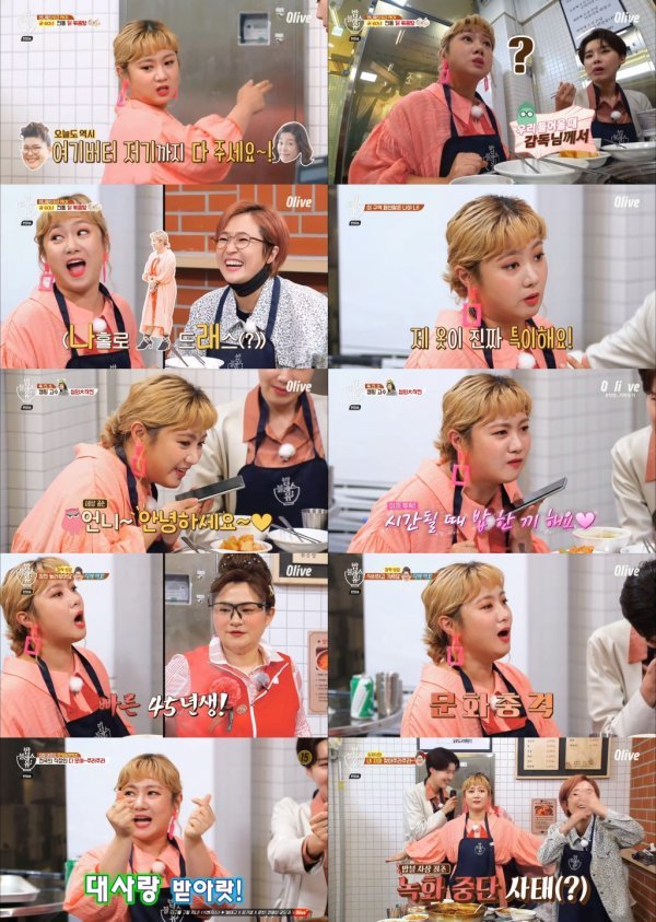 28일 방송된 Olive ‘밥블레스유2’에서 박나래는 송은이, 김숙, 장도연과 함께 최근 둘째이모 김다비로 트롯 가수 활동에 나선 김신영과 함께 맛있는 한 끼를 함께 했다.