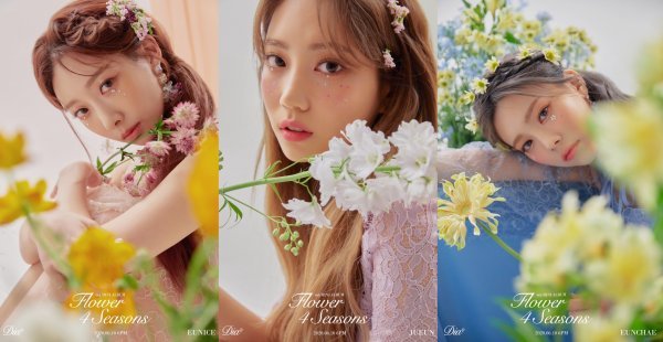 다이아는 오늘(29일) 공식 SNS를 통해 6번째 미니앨범 \'Flower 4 seasons\' 콘셉트 포토 유니스, 주은, 은채의 개인과 유닛 이미지를 게재했다.