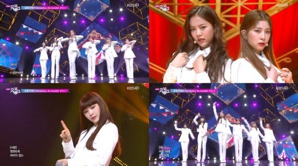 공원소녀는 29일 방송된 KBS 2TV '뮤직뱅크'에서 네 번째 EP앨범 'the Keys(더 키즈)' 수록곡 '공중곡예사(Wonderboy, the Aerialist)' 무대를 꾸몄다.