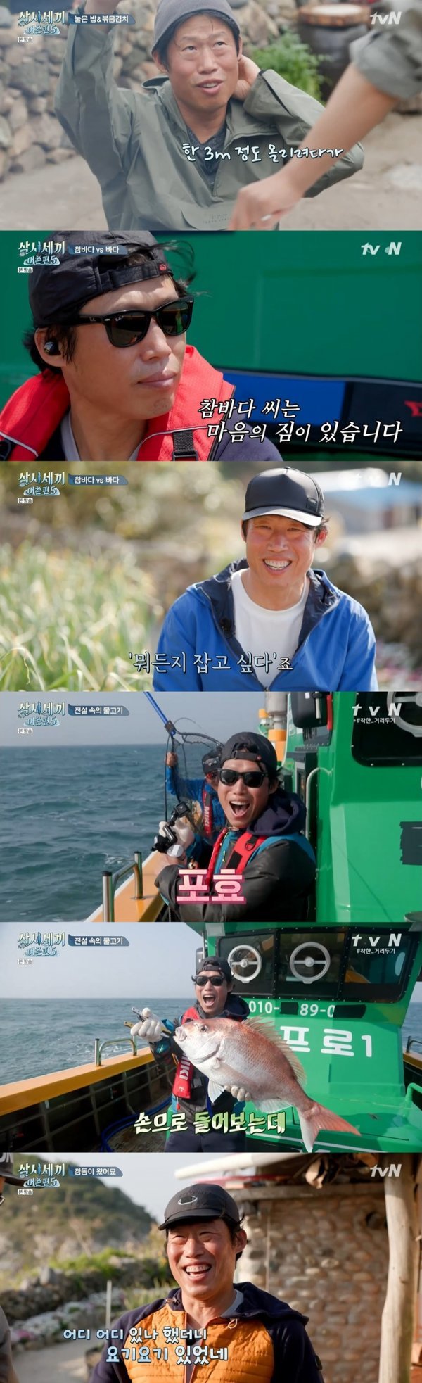 tvN \'삼시세끼 어촌편5\' 배우 유해진이 숙원사업이었던 참돔 낚시에 성공했다.