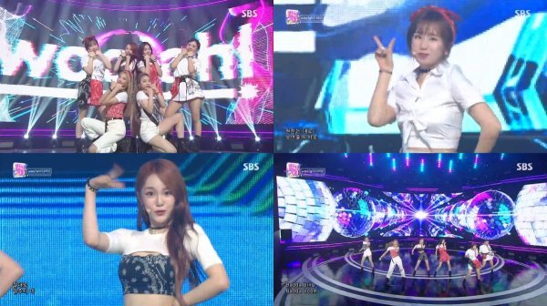 woo!ah!(우아!)는 31일 방송된 SBS '인기가요'에서 데뷔곡 '우아!(woo!ah!)'로 '시간 순삭' 무대를 선사했다. 이날 무대는 나나의 파워풀한 퍼포먼스와 송이의 텀블링으로 시작부터 팬들의 시선을 사로잡았다.